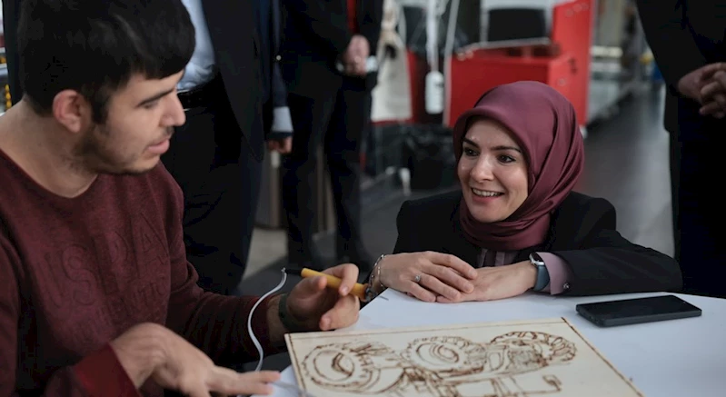 Aile ve Sosyal Hizmetler Bakanımız Mahinur Özdemir Göktaş, ziyaret ettiği merkezde engelli kursiyerlerle mozaik yaptı, söyledikleri şarkılara eşlik etti