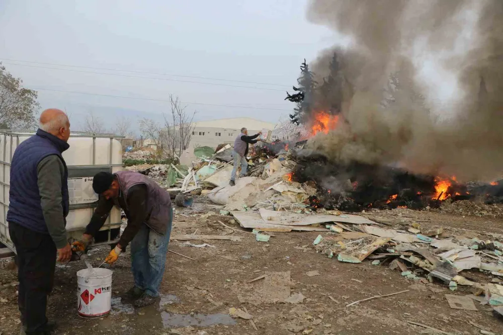 Hatay’da hafriyat atıklarının bulunduğu alanda çıkan yangın, vatandaşlar tarafından kovalarla su taşınarak söndürüldü.