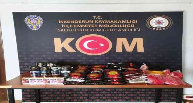 Edinilen bilgiye göre, Hatay Emniyet Müdürlüğü görevlilerince kaçakçılık olaylarının önlenmesine yönelik yapılan çalışma çerçevesinde İskenderun Kaçakçılık ve Organize Suçlarla Mücadele Grup Amirliği tarafından M.D.K. adlı şahsın Arsuz'un Şarkonak Mahallesinde bulunan iş yerinde yapılan aramada, 10 bin adet gümrük kaçağı makaron, 57 kilo gümrük kaçağı nargile tütünü ele geçirildi.