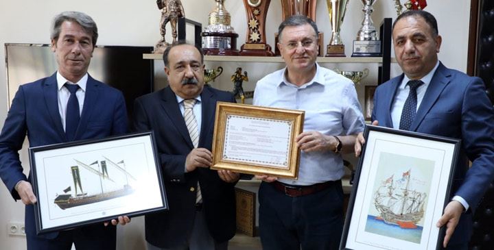 HBB Genel Sekreter Yardımcıları Metin Açık ve Bülent Ok ile Ulaşım Daire Başkanı Nuri Baycan, Tersaneler ve Kıyı Yapıları Genel Müdürlüğünden HBB şirketi olan Hatay Ulaşım ve Turizm A.Ş. adına aldığı Kıyı Tesisi İşletme İzin Belgesi’ni Hatay Büyükşehir Belediye Başkanı Doç.Dr.Lütfü Savaş’a sundu.