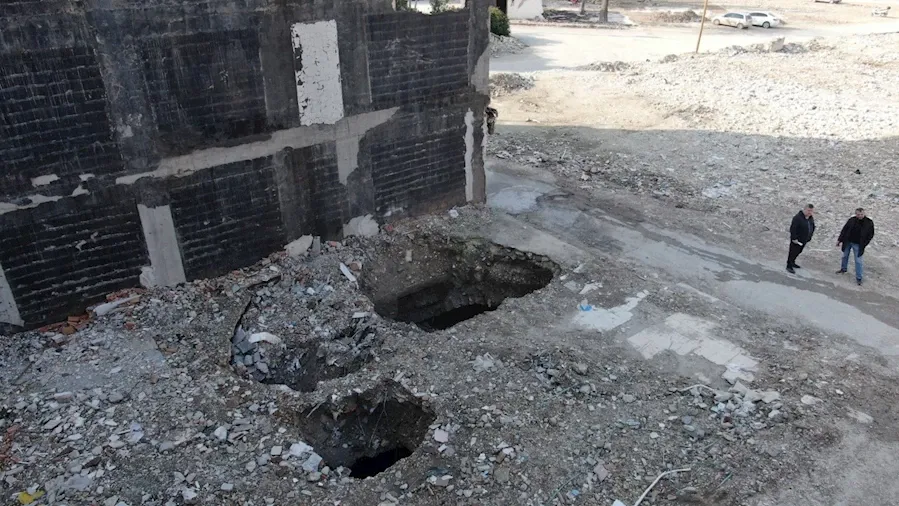 Kahramanmaraş merkezli depremlerde ağır hasar alan Hatay’ın Antakya ilçesinde yıkım çalışmalarında sona gelindi. Antakya’nın Kışlasaray Mahallesi, Saray Caddesi üzerinde bulunan ağır hasarlı binaların yıkımları gerçekleştirildi ve enkazları kaldırıldı. Cadde üzerinde enkazı kaldırılan bir binanın temelindeyse irili ufaklı 3 adet obruk oluştu. Derinlikleri 5 metreyi bulan obruklar, bölge halkı tarafından ilginç karşılandı.