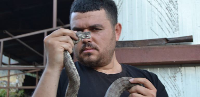 Havaların ısınmasıyla birlikte yiyecek için doğaya çıkan yılan Hassa ilçesinde bir evin mutfak kısmına girdi. Durumu bölgede yılancı diye tanınan Mustafa Göktürk’e haber verilmesi üzerine verilen adrese gelen ve yılan yakalama işini gönüllü olarak yapan Mustafa Göktürk tarafından engerek yılanı saklandığı yerden alınarak doğaya bırakıldı.