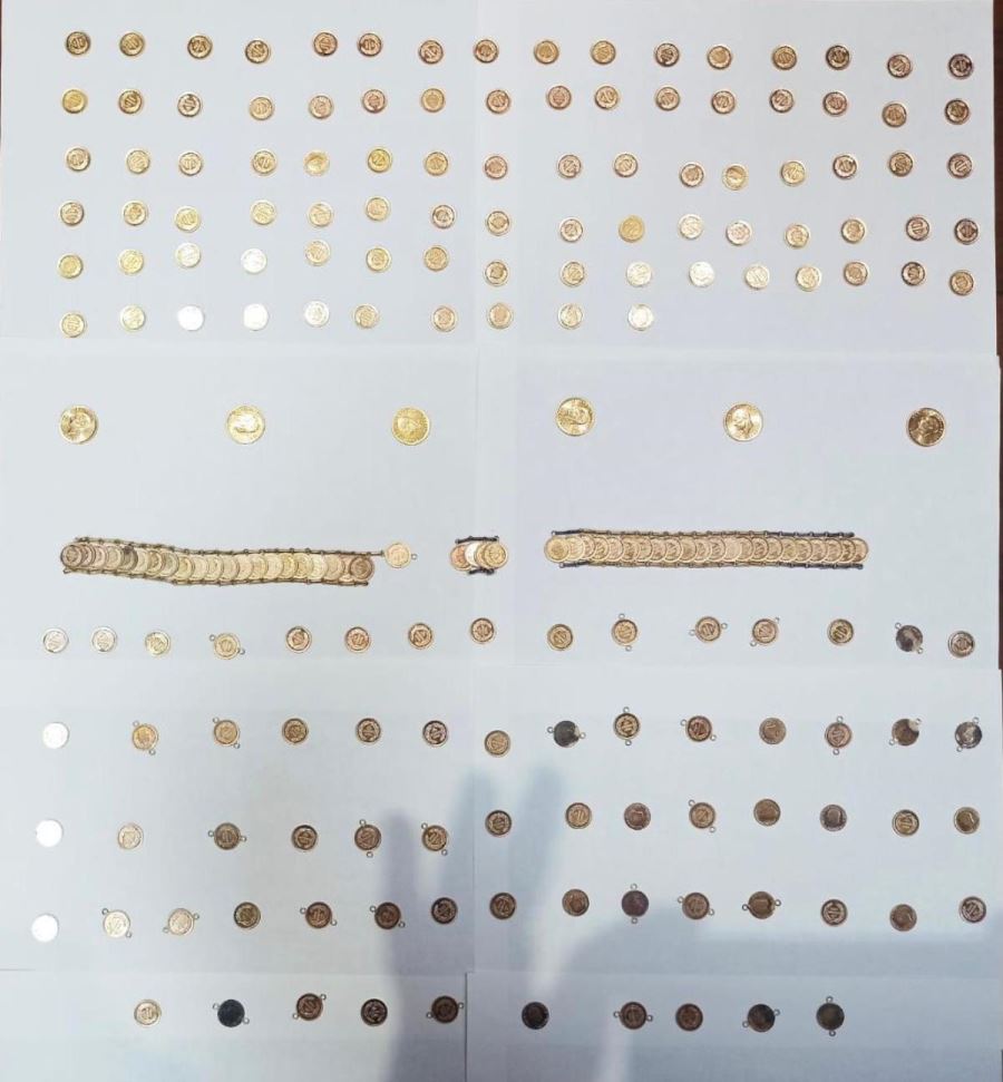 Hatay'ın İskenderun ilçesinde gramajları düşürülmüş 206 çeyrek ile 6 tam altına polis tarafından el konuldu.