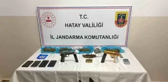 Hatay Emniyet Müdürlüğü ekipleri, bir şüphelinin aracında yaptığı aramada 2 tabanca ve 1 kilo 250 gram esrar ele geçirdi.