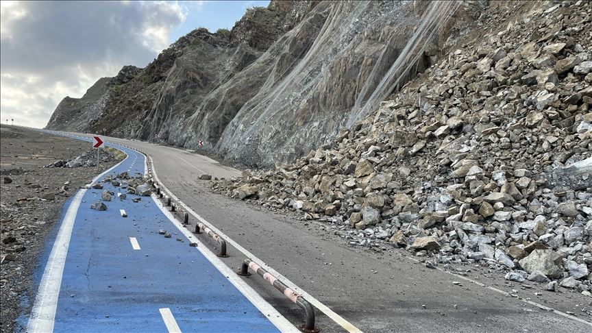 Meydana gelen heyelan nedeniyle yol çift taraflı ulaşıma kapandı.
