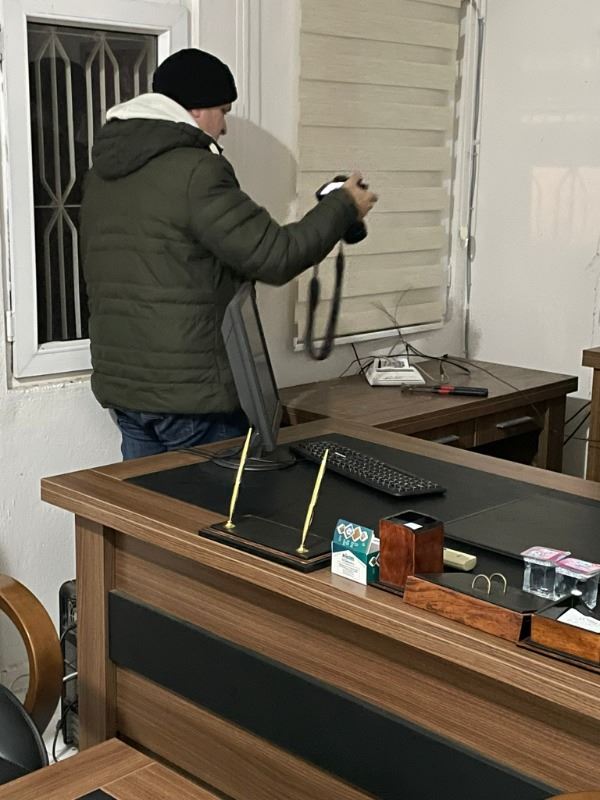 Görevli personelin akşam kontrol amaçlı müdürlüğe gelerek çevreyi kontrol ediyor müdürlük kapısının zorlanarak açıldığını içeride bulunan tv ünütesini, yazıcı kamera kayıt cihazı arşiv odasından bir takıp resmi evrakların alındığını depoda bulunan elektirik kablolarının söyledi bizde hemen olay yerine giderek polis ekiplerine haber verdim polis ekipleri kapılarda parmak izi çalışması yaptı devletin malına zarar veren kişi veya kişilerden şikâyetçi olduk polis olayla ilgili soruşturma başlattı dedi
