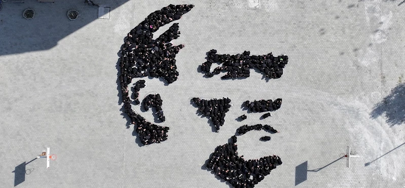 Kent merkezindeki Vali Şemsettin Uzun Ortaokulu öğrencileri, bir araya gelerek Atatürk'ün silueti koreografisini oluşturdu.