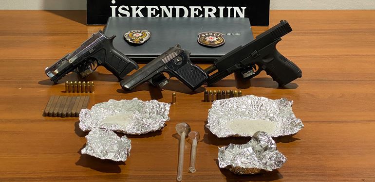 Yapılan asayiş uygulama kontrollerinde 4 adet ruhsatsız tabanca, 4 adet şarjör, 24 adet dolu fişek, 31 gram metamfetamin, 2 adet payp, 1 adet çalıntı laptop, 9 adet şase numarası basımı yapılan numaratör ele geçirildi.