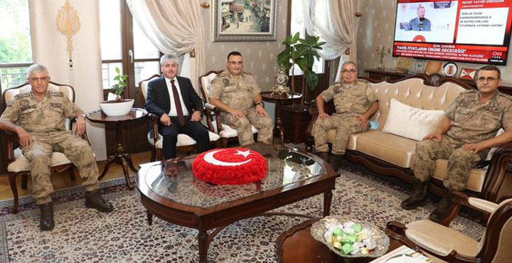 Bir dizi ziyaret ve incelemelerde bulunmak üzere Hatay’a gelen Jandarma Genel Komutanı Orgeneral Arif Çetin, Vali Rahmi Doğan’ı makamında ziyaret etti.