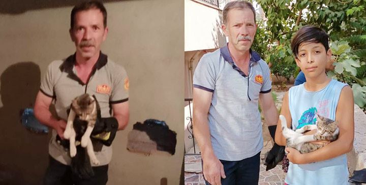 İlçeye bağlı Cumhuriyet Mahallesinde iki partman arasında bulunan boşlukta kedi sesi duyulması üzerine vatandaşlar itfaiye ekiplerine haber verdi.