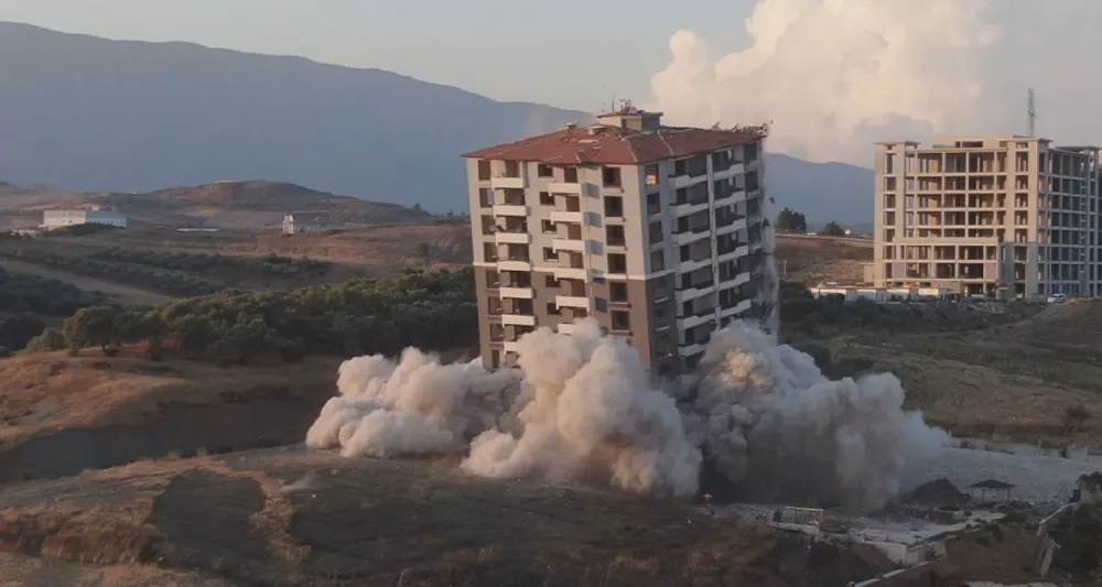 Kahramanmaraş merkezli depremlerde en büyük yıkımı alan Hatay’da kentin yeniden inşası için ekipler gece gündüz demeden 7 gün 24 saat çalışmalarını aralıksız sürdürüyor. Antakya ilçesinde de yıkım çalışmaları çerçevesinde Akasya Mahallesi’nde 15 katlı bina dinamit kullanılarak yıkıldı. Binanın kağıt gibi yerle bir olma anı ise dron kamerasına yansıdı. Geçtiğimiz yılın Nisan ayı itibariyle vatandaşların yaşamaya başladığı ve asrın felaketinde ağır hasar alan binada dairelerin 2 milyon TL’den alıcı bulduğu öğrenildi.