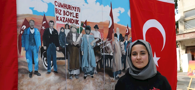 Diğer bir öğrenci Edanur Akçara da Cumhuriyet'in 100. yılı için özel bir çalışma yapmak istediklerini dile getirerek, "Öğretmenlerimizle resimler çizdik. Bu resimleri çizerken Cumhuriyet için neler yapıldığını anladık. Türk insanının en sevdiğim yönü; birlik olabilmemizdir. Varlıklarıyla yokluklarıyla hastası, genci, yaşlısı; herkes birlik olup 100 önce bu topraklara sahip olduk." dedi.
