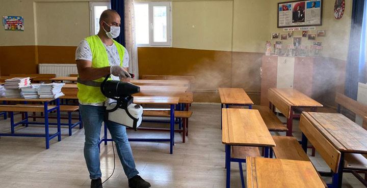 Yüz yüze eğitimin başlayacağının açıklanmasının ardından öğrencilerimizin temiz ve hijyenik ortamda eğitim görmeleri için ilçemiz sınırları içerisinde bulunan okulların sınıflarını, bahçelerini, merdiven ve tuvaletlerini en ince detayına kadar dezenfekte ediyoruz. Tüm öğrencilerimize sağlıklı ve başarılı bir eğitim öğretim yılı diliyoruz.” ifadelerine yer verildi.