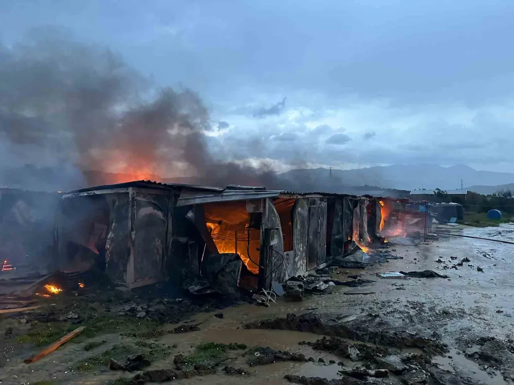 Şantiyede korkutan yangın: İşçilerin kaldığı konteynerler alevlere teslim oldu, o anlar kamerada