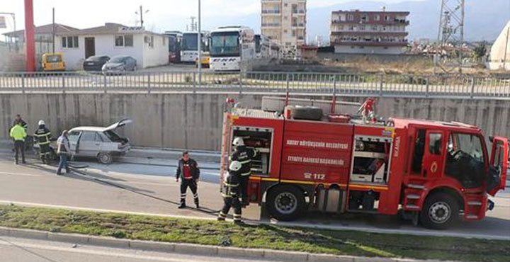 Edinilen bilgiye göre, 31 UY 402 plakalı hususi otomobil, Antakya-İskenderun kara yolu Honda Kavşağı?nda seyir halindeyken yanmaya başladı.