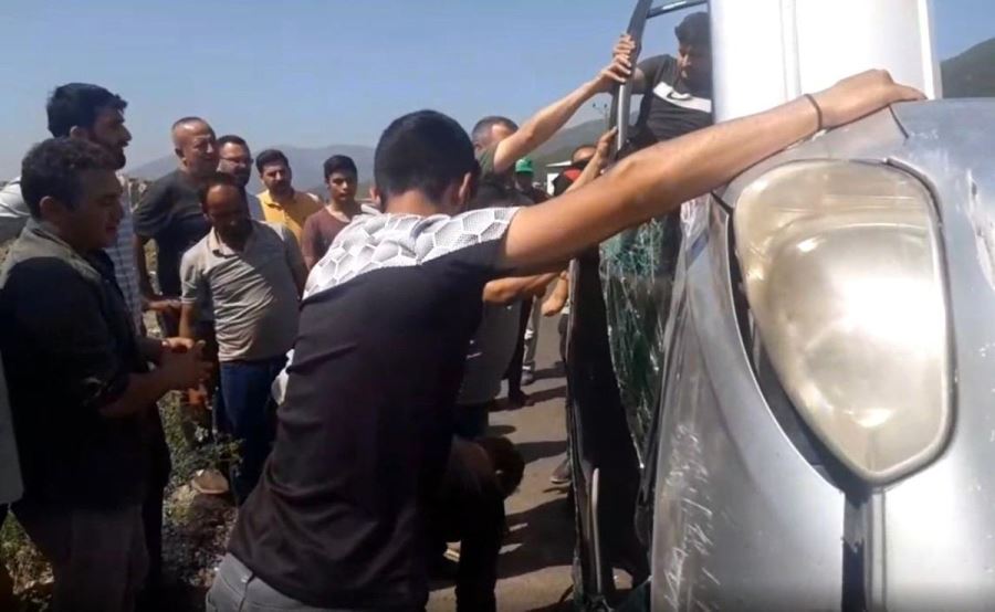 Edinilen bilgiye göre, Kahramanmaraş'tan Hatay istikametine seyir eden K.A. idaresindeki Hyundai marka 31 AEE 328 plakalı otomobil, İslahiye ilçesi Kırıkçalı kavşağında yoldan çıkarak taklalar atmaya başladı. Aşırı hız nedeniyle savrulan araç, 3 takla atarak ters bir şekilde durabildi. Kazayı gören olay yeri yakınındaki Özel Harekat Polisi merkezi ve itfaiye istasyonundaki personeller de hızla olay yerine geldi. Ters dönen otomobilin kapıları açılamayınca içeride mahsur kalan sürücü K.A. ve yeğeni H.A.'yı kurtarmak için çevrede bulunan vatandaşlar, polis ve itfaiye ekipleri tarafından çalışma başlatıldı. Otomobilin camları kırılarak, içerideki 2 kişi dışarıya çıkarıldı.