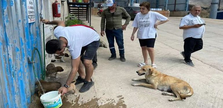 Köpek ve yavruları, itfaiye ekiplerince bölgeden kurtarılarak vatandaşlara teslim edilirken, güvenli bölgeye götürülen köpeklere su ve süt verildi.